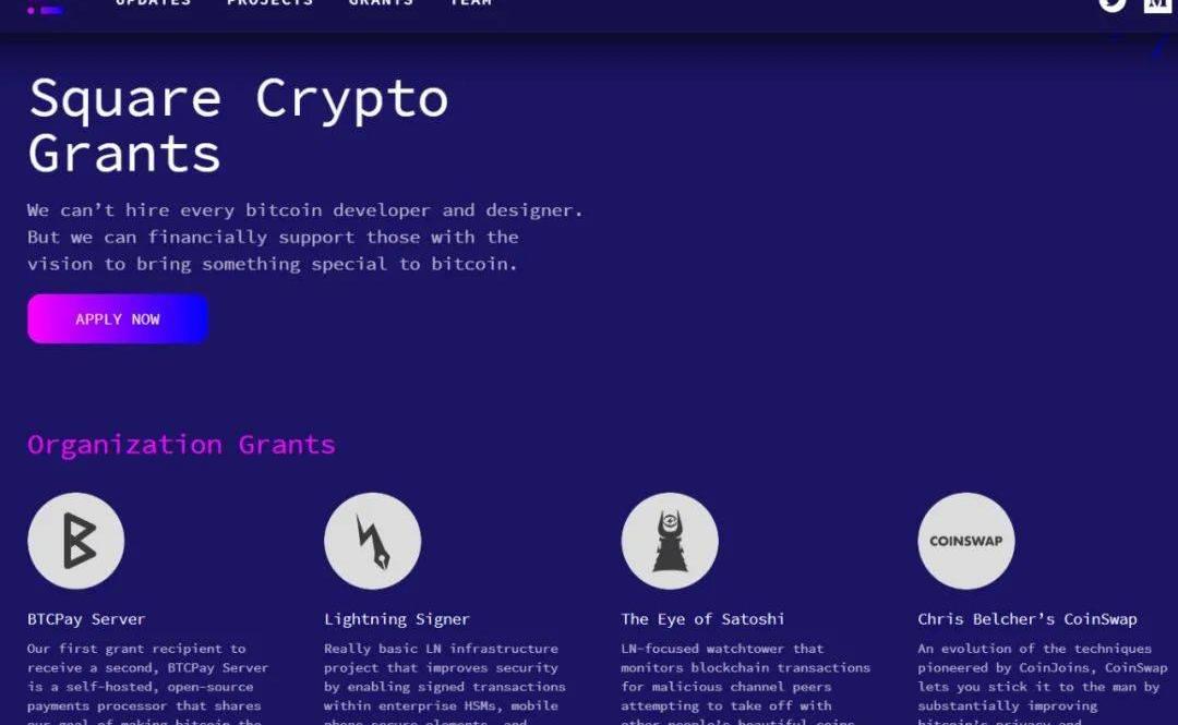 據官網數據顯示,SquareCrypto目前已資助四家比特幣相關組織,并捐助19位比特幣開發人員和設計師。上個月,SquareCrypto就向比特幣開發人員LeonJohnson提供10萬美元的資助,將通過一個名為Photon的項目幫助他進行簡化比特幣密鑰管理的工作。