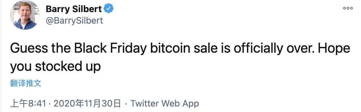 就在今天白天,灰度母公司DCG創始人BarrySilbert在推特上表示,我猜黑色星期五的比特幣拋售正式結束了,希望你備貨充足。