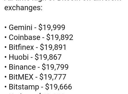 1900/1/1 0:00:00新高! 北京時間22:53,Bitstamp上的比特幣價格突破19800美元,創下2017年12月以來比特幣價格新高。23:15,火幣、OKEx、幣安等三大交易所的比特幣價格均突破新高.