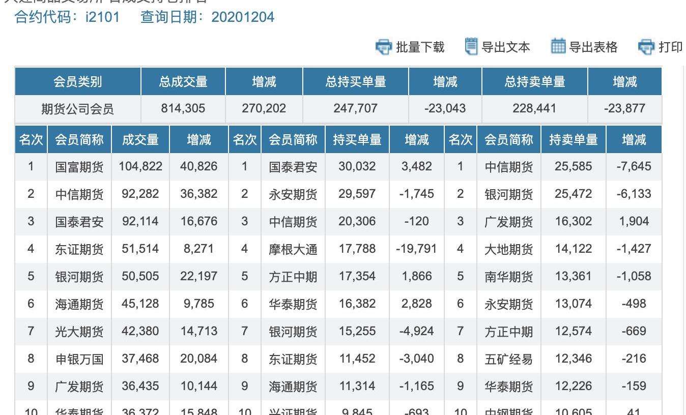 大連商品交易所鐵礦石2101合約12月4日數據