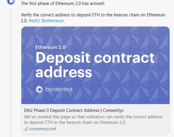 但是,ConsenSys在推特上提醒用戶,不應該將資金直接發送到存款合同,而應該使用放樣機制對資金進行放樣。