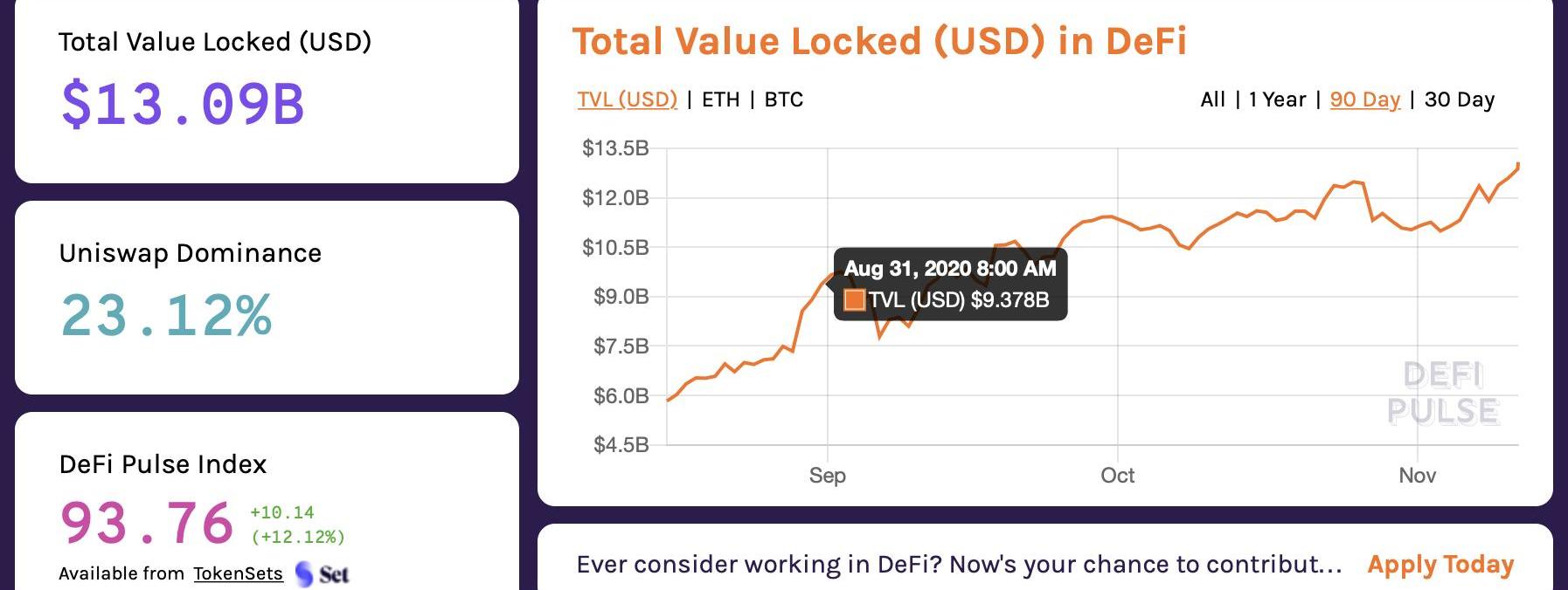 盡管全球金融市場評估了潛在的COVID-19疫苗的影響,但被DeFi協議鎖定的總價值繼續創下歷史新高。盡管在過去兩個月中蒙受了巨大損失,但人們對這一加密領域的興趣如此之高表明它擁有更大的空間。