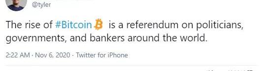 正如Gemini交易所CEOTylerWinklevoss所說的:“比特幣上漲可以被看做是一次人們對、政府以及銀行的全民公投表現”;“比特幣是你面對眼前風暴的唯一避難所。”