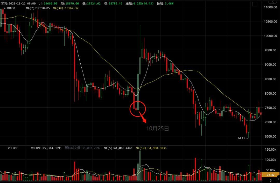 當時正處熊市,BTC也剛跌破主要支撐平臺,市場極度悲觀。但是市場的悲觀轉眼被新華社這篇通訊稿打破,BTC從7300美元附近一路上漲,26日成功突破10000美元,最高達10817美元。