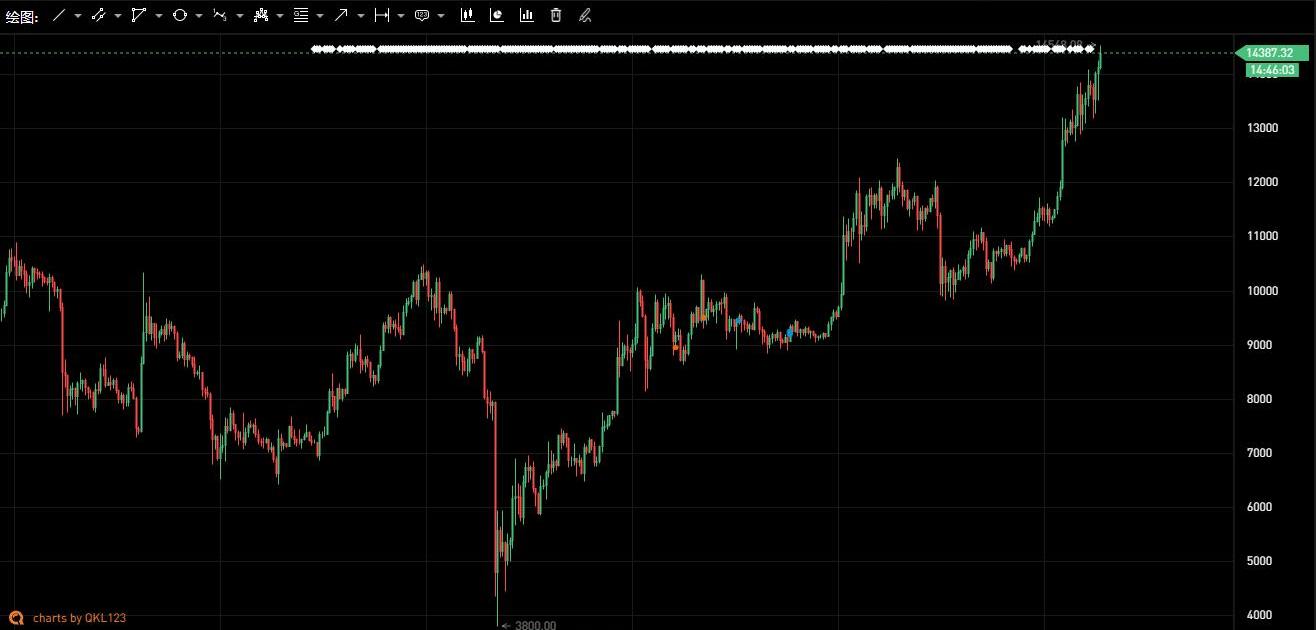 同是大V分析師的區塊鏈杰尼君說:整體盤面今日沖擊14000后并且站穩,處于強勢上漲之中,現在14300-14400的位置屬于最近半年從4月份7000-14000的上漲通道上邊界處,整體壓力很大。但是一旦突破14400并且站穩,大概率會有一波加速,上方又是新的星辰大海,牛市不言頂。