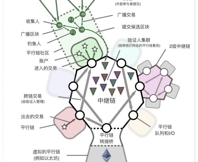 那么,為什么說,我們需要注意到上圖的右邊有個二級中繼鏈,如果一條中繼鏈能連接的平行鏈和轉接橋是有限的,那么中繼鏈還可以通過生成或者連接一個二級中繼鏈,進一步擴大自己的連接能力,而二級中繼鏈還可以再連接新的中繼鏈,以此類推,從理論上講Polkadot的這個結構具有無限擴展性,可以連接所有的區塊鏈。