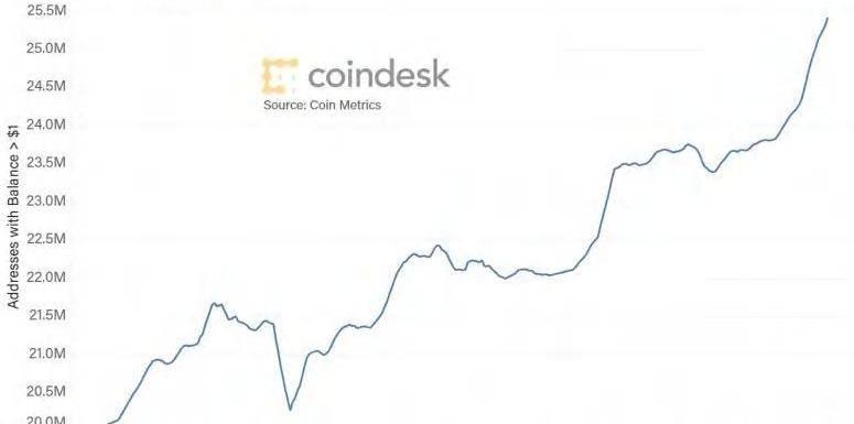 似乎需要證據證明,這次比特幣的上漲與2017年比特幣價格上一次超過1.5萬美元的上漲有很大不同,谷歌對“比特幣”的搜索量也在飆升。結論:這意味著這次的炒作要低調得多(盡管加密Twitter上有些狂妄自大)。這也表明進入市場的“新手”越來越少——推高比特幣價格的買家并不需要谷歌,這意味著他們不僅僅是被比特幣的表現所吸引。