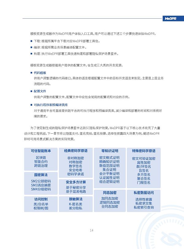 為了克服這些困難,微眾銀行區塊鏈團隊自主研發了WeDPR隱私保護解決方案,依托區塊鏈等分布式可信智能賬本技術,融合密碼算法、隱私保護算法、安全多方計算等專業領域前沿成果,兼顧用戶體驗和監管治理,針對隱私保護核心應用場景提供極致優化的技術方案,同時實現了公開可驗證的隱私保護效果。