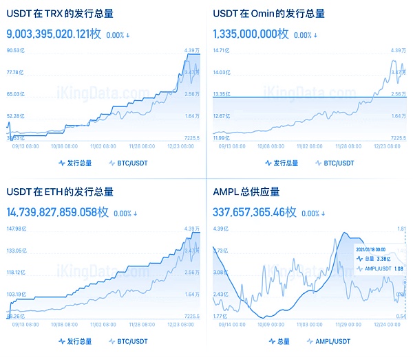 (USDT 在其他鏈上的發行總量以及 AMPL 總供應量)