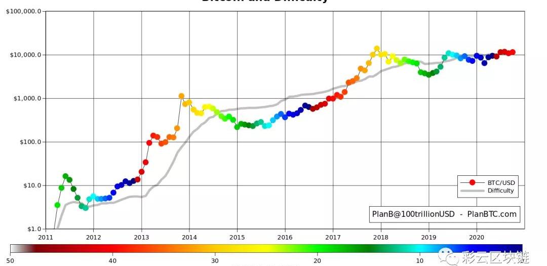 著名的planB比特幣S2F定價模型預測每經歷一次減半后幣價都會出現明顯上漲