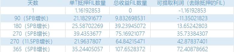 每日11.5PB首年可提取利潤增長超過前者12.62%。可以看出,雖然每日11.5PB的算力增長總收益沒有前者多,但是均攤的抵押成本降低了,所以凈利潤多9.1枚FIL,超12.62%;
