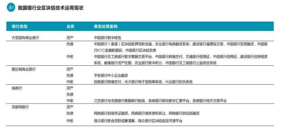 區塊鏈技術并非無所不能,僅適用于部分應用場景。一是應用場景具備良好數據基礎、信任機制存在問題。區塊鏈技術的應用需要基于完善的數據庫體系及多方寫入的數據機制。若寫入方與現存的數據來源方利益一致,不存在信任問題,或存在可信賴的第三方,則區塊鏈技術不適用。二是信息的公開范圍決定技術模式。公有鏈允許任一節點加入,信息對全系統公開;聯盟鏈允許認證后的機構參與共識,信息根據共識機制進行局部公開;私有鏈只適用于限定機構之內。三是業務涉及價值轉移、數據管理或授權管理等。價值轉移類業務涉及數字資產在不同賬戶間的轉移,如支付、信貸等;數據管理類業務涉及信息在區塊鏈上的記錄,無資產轉移,如跨境貿易等;授權管理類涉及數據訪問及共享,如征信系統等。目前,商業銀行應用區塊鏈技術的領域包括支付、清算、信貸、貿易及征信等。