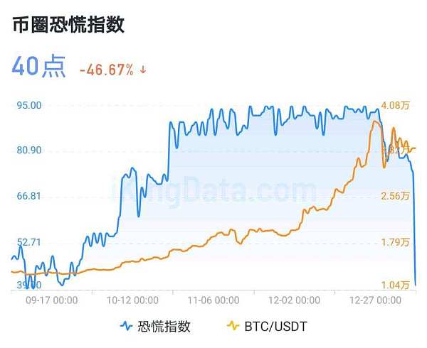 2021年1月8日,BTC價格突破4萬美金,再創歷史價格新高41969美元/枚,整個加密幣行業興奮了,甚至延申到了整個金融圈。“幸福來的太快就像龍卷風,吹完它就走!”時隔不足半月,BTC價格現已回到3萬美金附近,單價下跌超1萬美元,跌幅超23.83%。市場中的投資者逐漸暴露出恐慌、懷疑,“比特幣的牛市結束了嗎?”幣圈恐慌指數從自95附近跌至40,僅1天時間就從75跌至40。