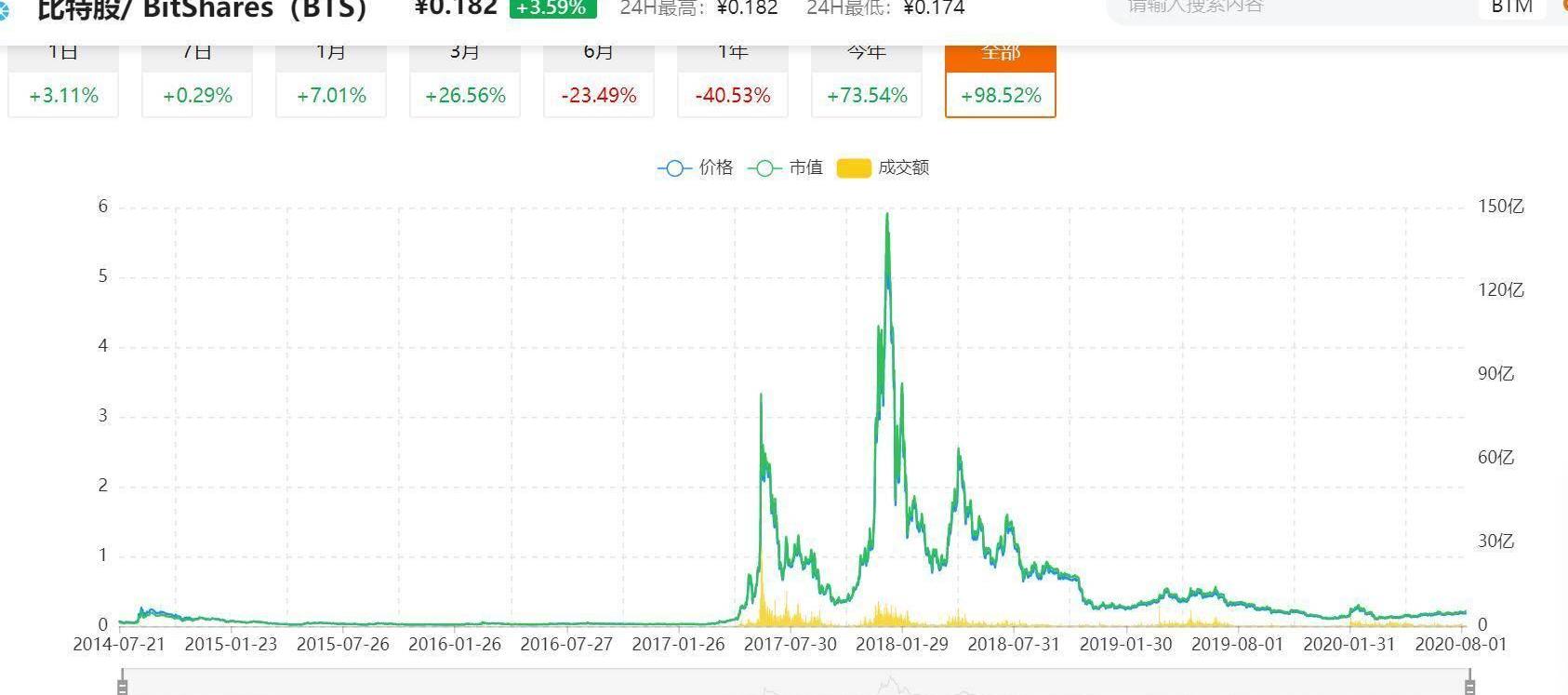 現在比特股和未來幣已經是仙股的價格,但在2017年6月時,比特股回光返照,出現了首個峰值,漲幅高達130倍,或許是市場為比特股身為ICO先烈而致敬。