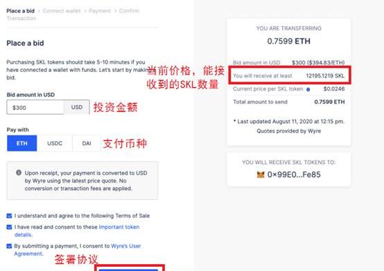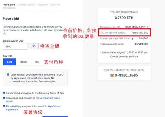 第二,在此期間,給出愿意投.資的金.額,同時根據出.價時的價.格計算出所獲得的SKL數量;