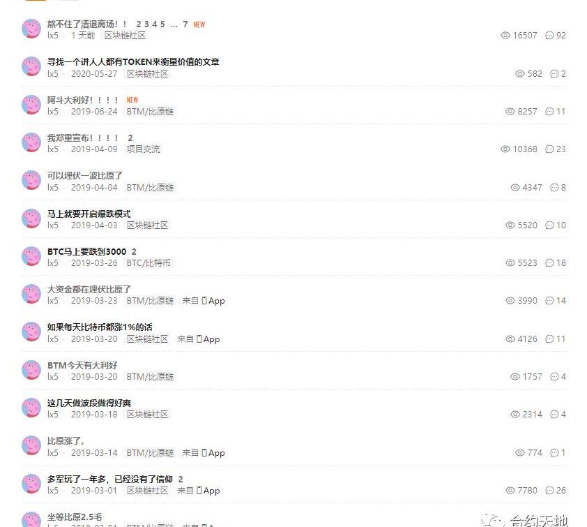 去年3月,他興奮發貼“比原漲了”——其實那時候正是小牛啟動,萬幣齊飛的時候。
