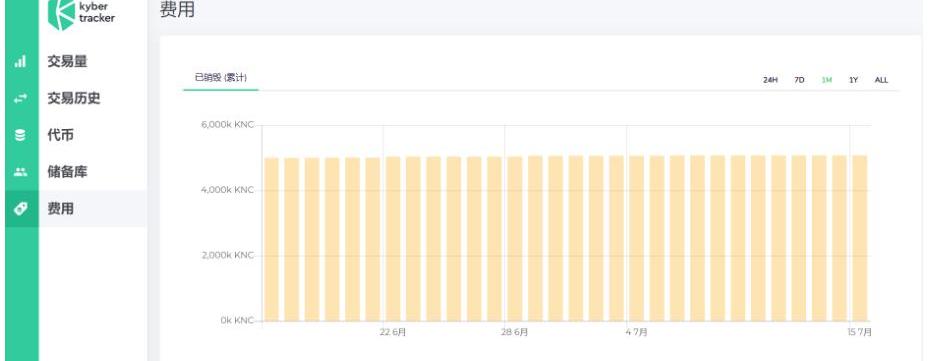 KNC幫我賺了幾倍收益出來,所以不得不提一下KyberNetwork的數據中心了,整個頁面比較清新,能夠查看交易量,交易歷史,交易歷史,不同幣種的交易變化,Kyber一打開出現的就是24小時交易量和代幣KNC的價格浮動以及幣種交易量排名。