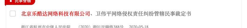 5月18日,杭州市中級人民法院分別就北京樂酷達網絡科技有限公司與王鈴聲、衛偉平的網絡侵權責任糾紛的程序性事項做出了二審裁定。