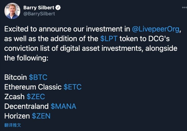 灰度前CEO Barry Silbert宣布DCG投資LPT及MANA