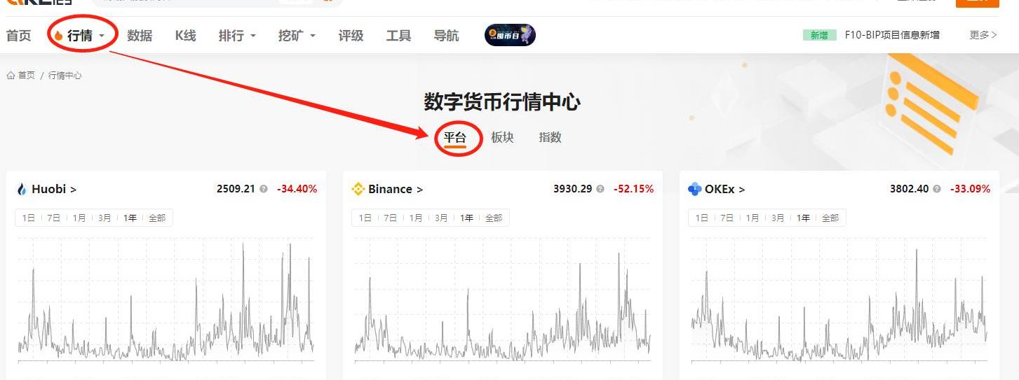 2.在QKL123官網主頁,點擊“行情”之后選擇“平臺”,即可查看交易平臺指數。