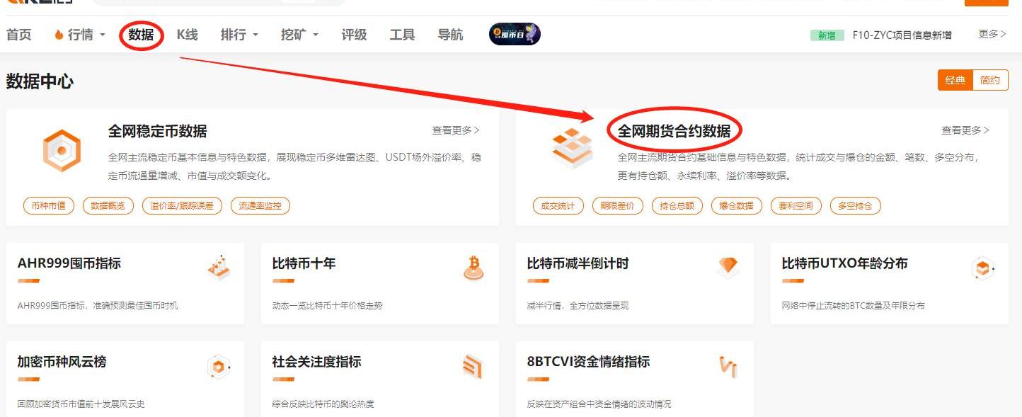 3.在QKL123官網主頁,點擊“數據”一欄,之后選擇“全網期貨合約數據”,可查看期貨相關數據。