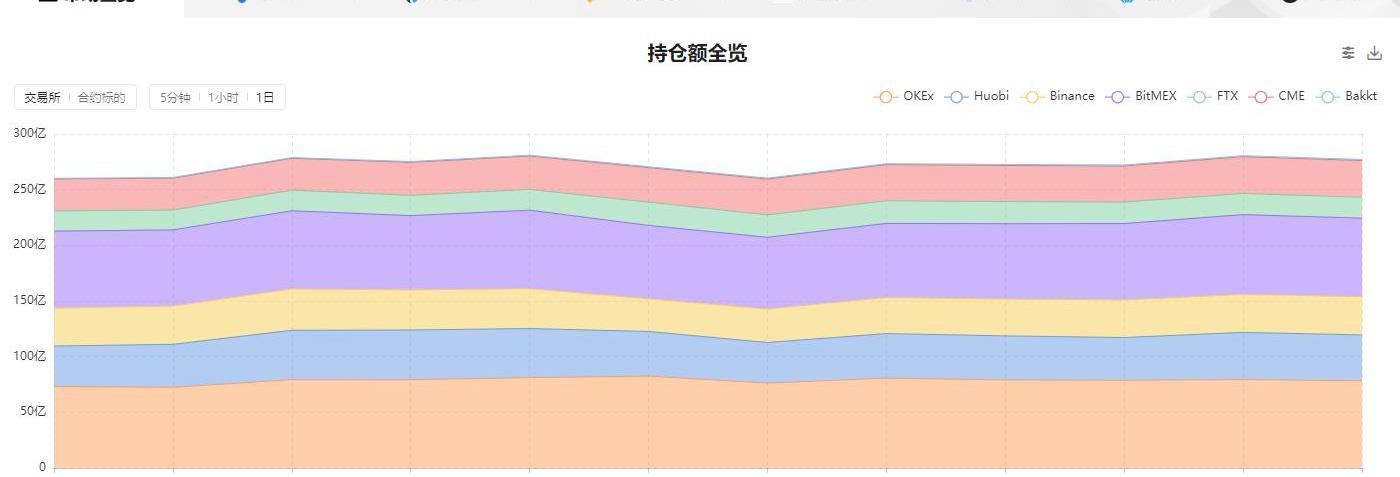 過去兩周內,交易平臺的整體持倉金額呈現此消彼長的變化。其中,OKEx和BitMEX的持倉金額最高,兩者的持倉金額基本維持在70億元以上。其次是Huobi、Binance和CME,三者的持倉金額在30億元左右。值得注意的是,CME和Bakkt的持倉金額在不斷增加,從5月底的29億元上漲至目前的33億元,說明投資機構的持倉意愿有所增強。