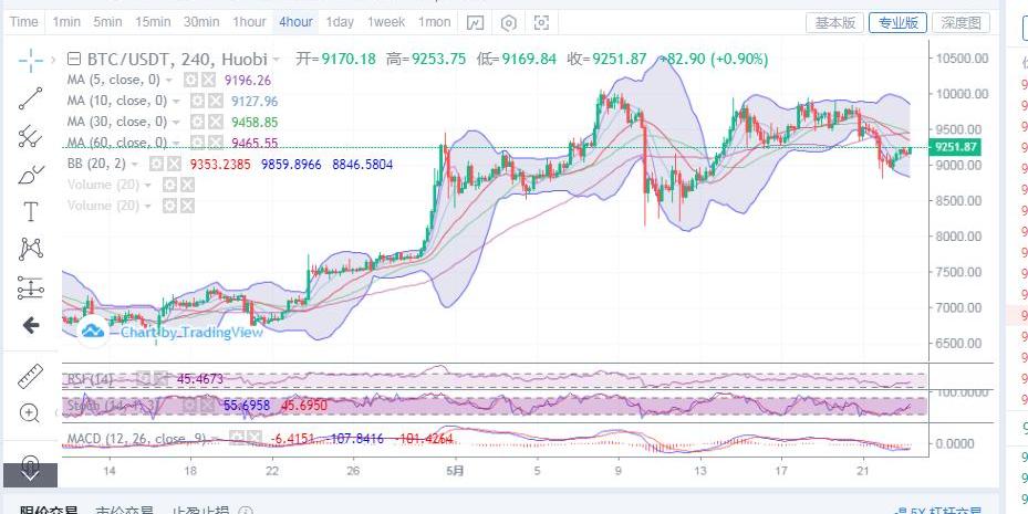 昨日比特幣至在8820底部找到支撐之后,行情開偏向震蕩,在于晚間一波上拉之后刷新日內高點,最后收線在9221位置。到今日小幅延續上行,在9260位置觸及支撐,價格隨后開始向下回調,目前早間八點過一刻價格在9190位置。