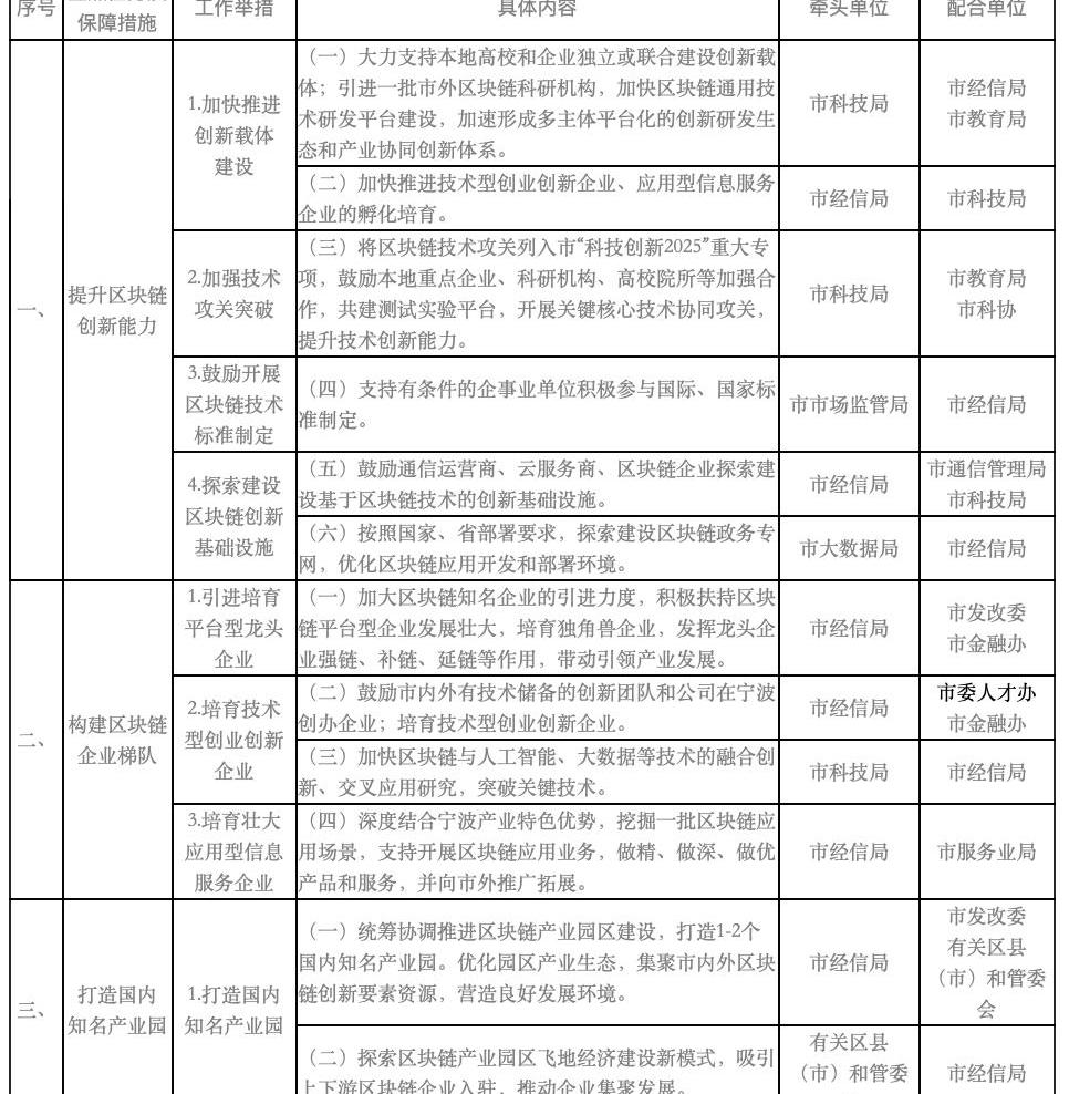 編者注:原標題為:寧波市特色型中國軟件名城創建工作領導小組辦公室關于印發《寧波市加快區塊鏈產業培育及創新應用三年行動計劃》的通知