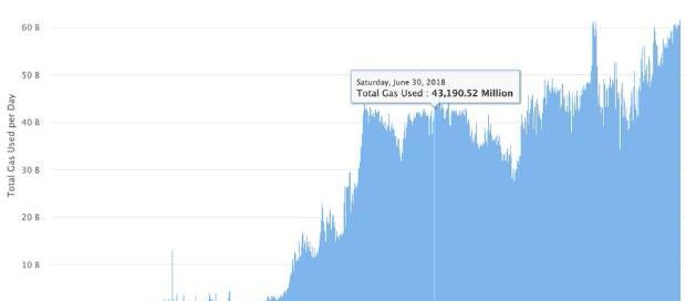 “以太坊每天發生850,000的交易,而今年二月早期該數值為580,000。從另一種角度看,850,000意味著目前每天以太坊發生的交易量是BTC的三倍,這表明以太坊網絡的使用量正在增加。”