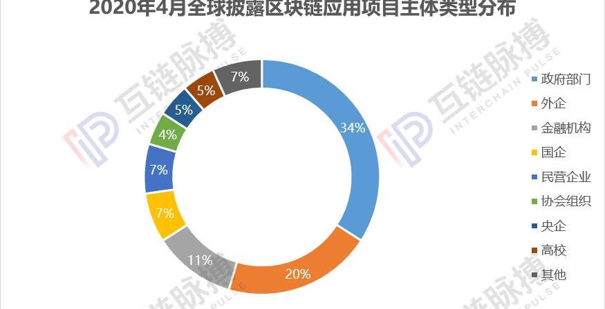 互鏈脈搏研究院統計數據顯示,2020年4月,政務和社會公共類應用項目數量分別為12個和11個,占比分別為27.3%和25%。