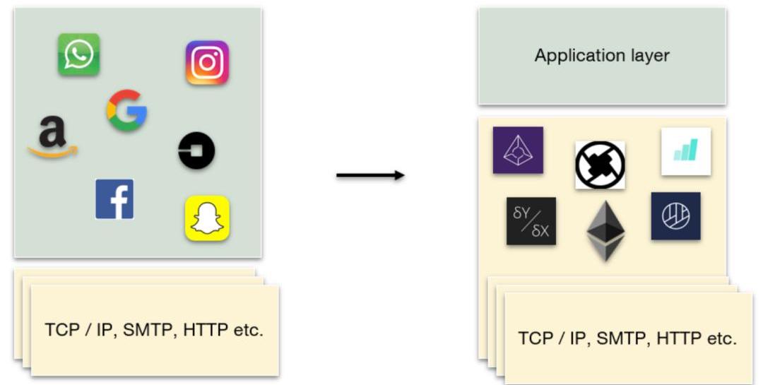 ·??下一代Internet應用程序將建立在加密協議之上。加密協議所提供的獨特功能使一些新的Internet應用程序得以構建。與互聯網創業者在開放的Internet協議之上建立新業務產品的方式類似,加密協議使得開發人員也可以重新設計現有行業并建立一個全新的領域。
