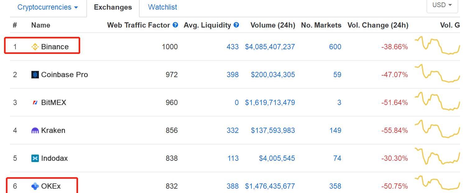 如果說之前的舉措還是有所保留和克制的話,那么5月15日的排名規則,則是為幣安量身定制。在這一新的排名機制下,幣安排名第1,OKEx排名第6,火幣排名第18位。一直被幣圈冠以“OBH”三大交易所排名一下子拉開了距離。