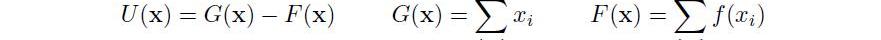 其中,U(x)?是由增益函數?G(x)?和損失函數?F(x)?組成的效用函數;x?代表的是每種資產的儲備量。實際上,當流動性池達到平衡時,該函數起到恒定總和的作用,但是當流動性池中每種資產的權重都偏離指定閾值時,就會逐漸增加滑點。這種設計可以確保流動性池基于每種資產的預設權重保持平衡。