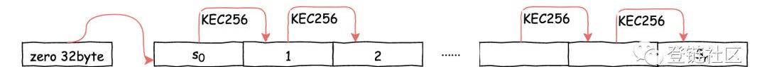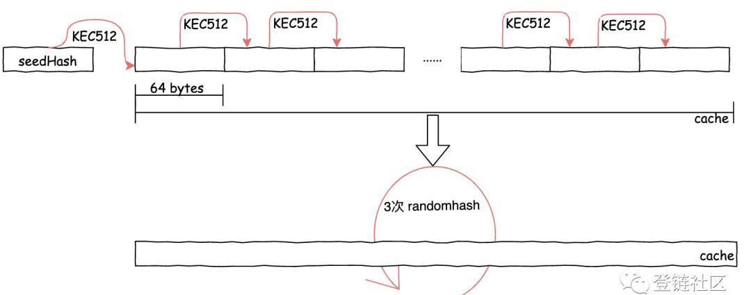 第一個窗口周期內的種子哈希值s是一個空的32字節數組,而后續每個周期中的種子哈希值,則對上一個周期的種子哈希值再次進行Keccak256哈希得到。
