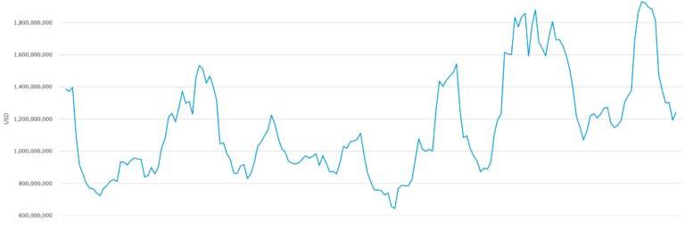 根據Blockchain的數據,自今年年初以來,通過比特幣網絡流動的資金一直在增長。3月15日,比特幣網絡的日交易總量從6.4億美元的低點增加到最近190萬美元的高點,增幅為200%。