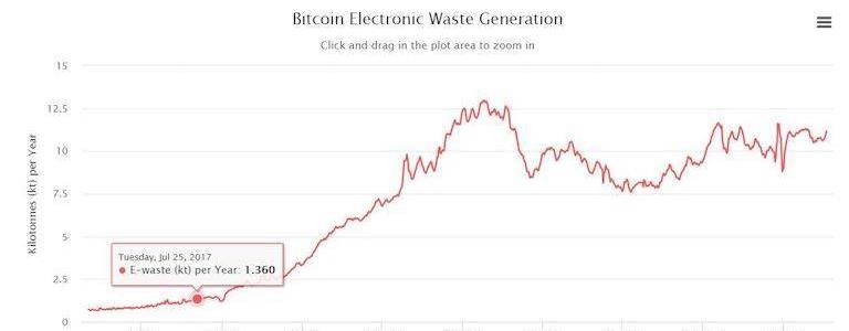 此外,由于比特幣的技術進步和挖礦難度的增加會產生了大量的報廢礦機。隨著礦機每隔1.5年就被淘汰一次,而且淘汰的礦機也沒有其他用處,這也是亟待解決的問題。