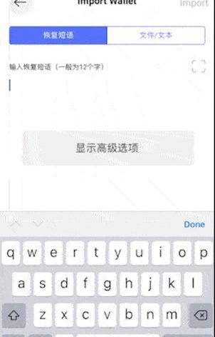 導入助記詞:用戶導入一套已有的助記詞到錢包內恢復資產