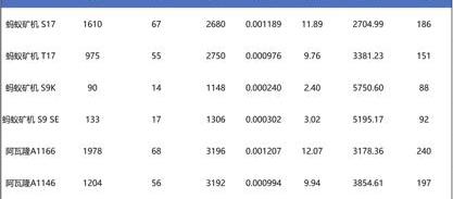 減半后礦機靜態盈利情況