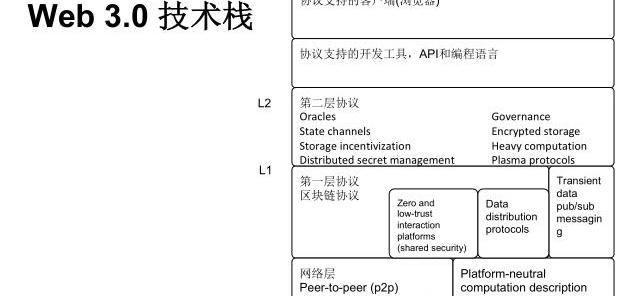 再具體到一些細節如Web3.0技術棧,簡單的可以劃分為這幾層,最上層是客戶端,比如去中心化的瀏覽器。在這之下包含了一些協議支持的開發工具,對應API和特定編程語言。臉書的Libra有自己的編程語言Move,以太坊也有自己的編程語言Solidity。再下一層是Layer2的協議,比如說Governance、Statechannels等。一個區塊鏈應用不能隨意獲取互聯網上的信息,比如說想看天氣預報,區塊鏈不能直接提供這樣的數據,這里我們就需要Layer2協議棧中預言機協議,通過協議本身預言機機制獲取互聯網上的信息放在區塊鏈上。Layer1協議,就是廣為人知的區塊鏈底層協議,比特幣、以太坊等各種各樣的公鏈,聯盟鏈都采用了類似的底層協議,它提供了支撐整個Web3.0愿景的基礎。再往下是網絡層,如P2P網絡傳輸。