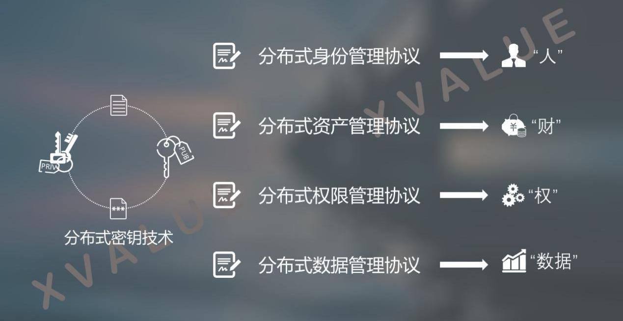 通過以上對現有中心化方式下的非對稱密碼算法進行的分布式背景下的改造,可以實現基于區塊鏈以及其他分布式應用對“人”、“財”、“權”和“數據”的原生的分布式支持,從而可以實現更加豐富的上層分布式應用。