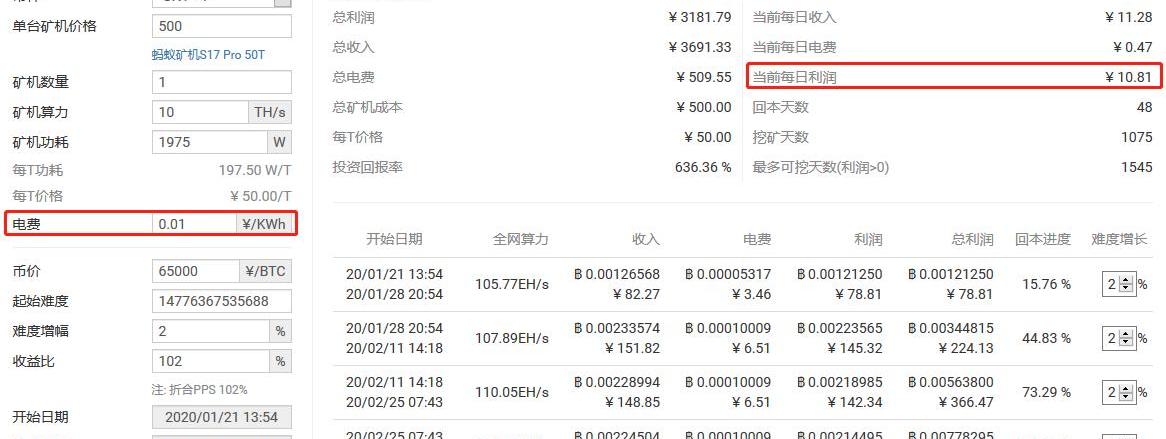 根據BTC.com挖礦計算器,一臺當前售價為500元的二手S9礦機,算力為10Th/s,在電費幾乎為零時,日收益能達到10元,不到兩個月就能回本,此后每多挖一天就都是賺。