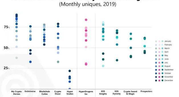 最受歡迎的區塊鏈游戲的月留存率超過75%。