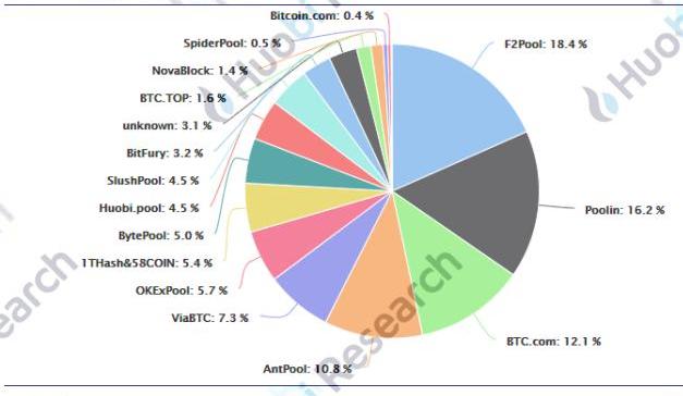 比特幣全網周出塊數下跌4.46%,前五名排名較上周有所變化;過去一周比特幣全網出塊數據為1028塊,相比上周下跌4.46%,其中排名前五為F2Pool、Poolin、BTC.com、AntPool、ViaBTC分別出塊189、167、124、111、75,占比為18.39%、16.25%、12.06%、10.80%、7.30%,算力分別為20.52EH/s、18.13EH/s、13.46EH/s、12.05EH/s、8.14EH/s。