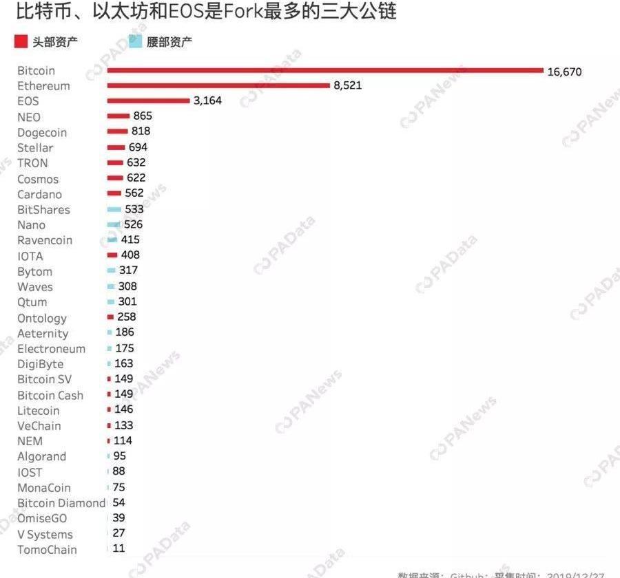 PAData選取了CoinMarketCap上市值排名前100中的35個公鏈項目,市值前20的公鏈項目為頭部資產項目,市值排名21-100的公鏈項目為腰部資產項目,通過對這些項目Github數據、鏈上數據、社交媒體數據進行梳理和分析,盤點2019“公鏈之最”。