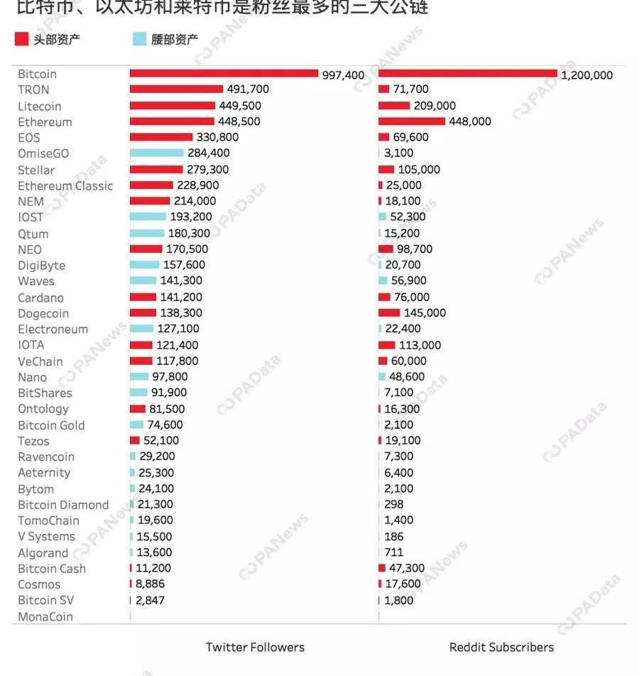 除了技術、市值,公鏈影響力的大小還體現在各個社交渠道的粉絲關注度上。尤其是公鏈都倡導社區自治,更決定了他們在創始之日起就要格外注重各種社交渠道的推廣和粉絲的運營。