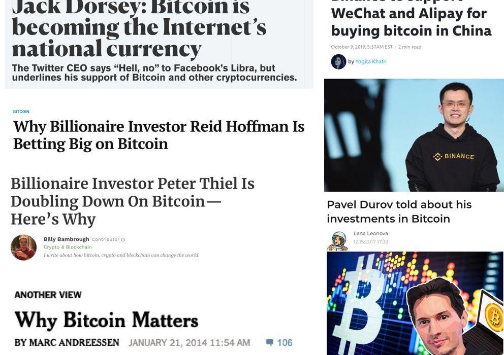 例如,Twitter的創始人JackDorsey,領英LinkedIn的創始人ReidHoffman,還有Facebook的董事會成員馬克?安德森(MarcAndreessen)和彼得?泰爾(PeterThiel),他們全都支持比特幣。同樣,Binance的創始人趙長鵬和Telegram的創始人杜羅夫分別是加拿大華人和俄羅斯僑民,他們也支持比特幣。不同的國家,不同的背景,但對數字貨幣有著共同的信仰。