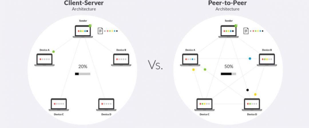 在整體架構上,客戶端-服務器是通過集中式服務器對整個網絡進行操控的,即所有其他網絡參與者都是客戶端。相比之下,區塊鏈以點對點平臺的方式運行網絡,即允許每個網絡參與者都充當客戶端或服務器。