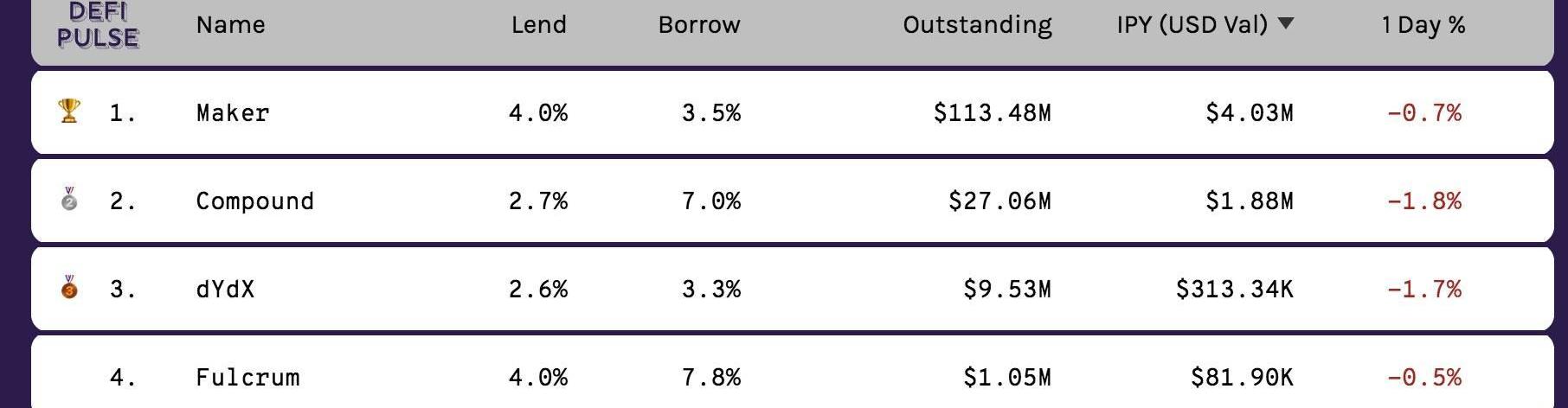 截至發稿時,Maker的借貸利率分別為3.5%和4%,而其在10月份時的利率還維持在10%以上。