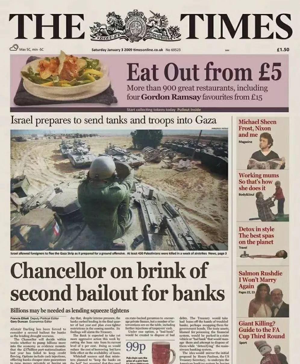 2009年1月3日《泰晤士報》,Chancelloronbrinkofsecondbailoutforbanks