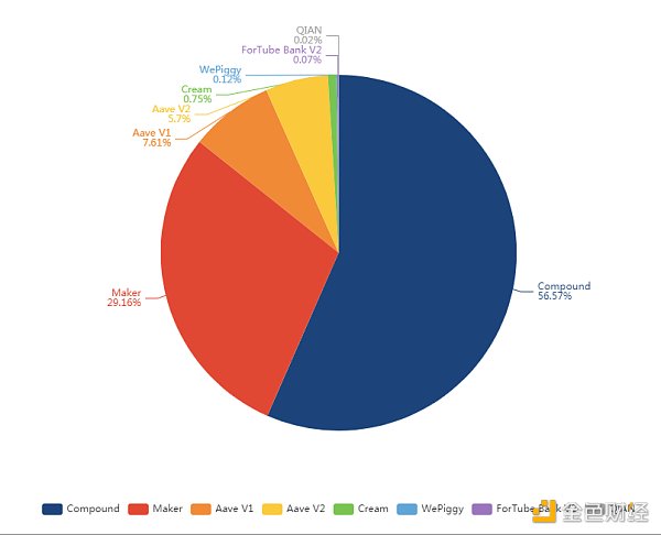 DeFi借貸平臺借款占比,金色財經制圖, 數據來源:Debank
